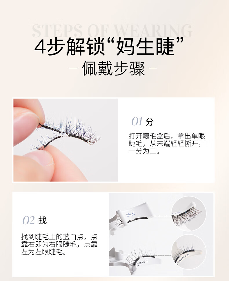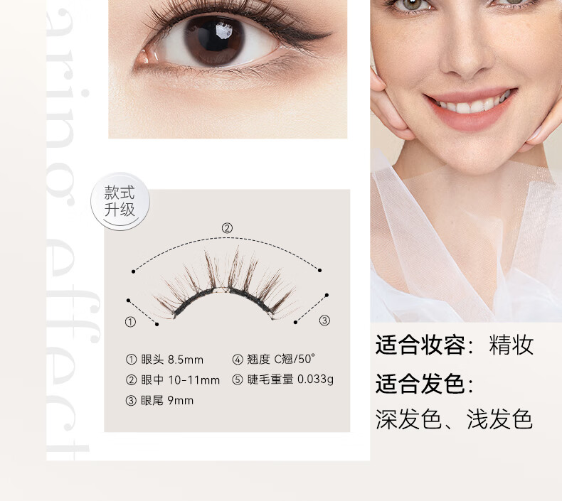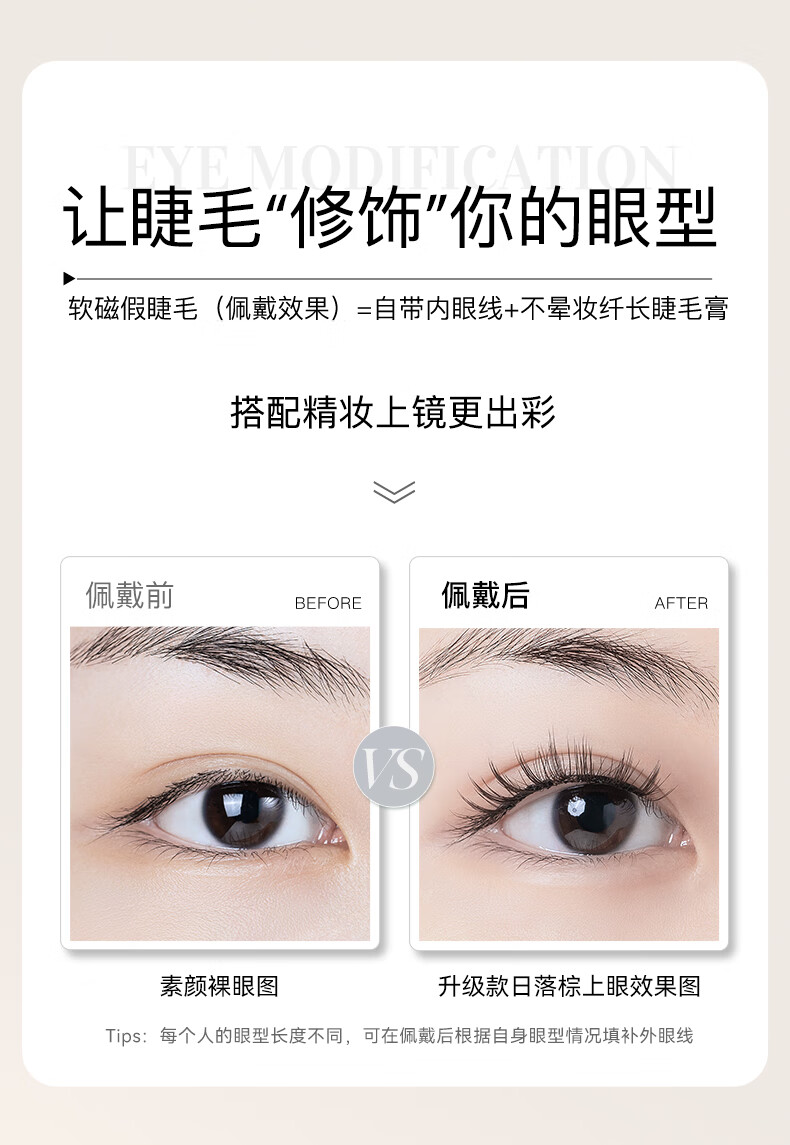 WOSADO悦瞳漫画睫磁吸假眼睫毛小恶魔软磁整条自粘零胶日落棕升级送女生