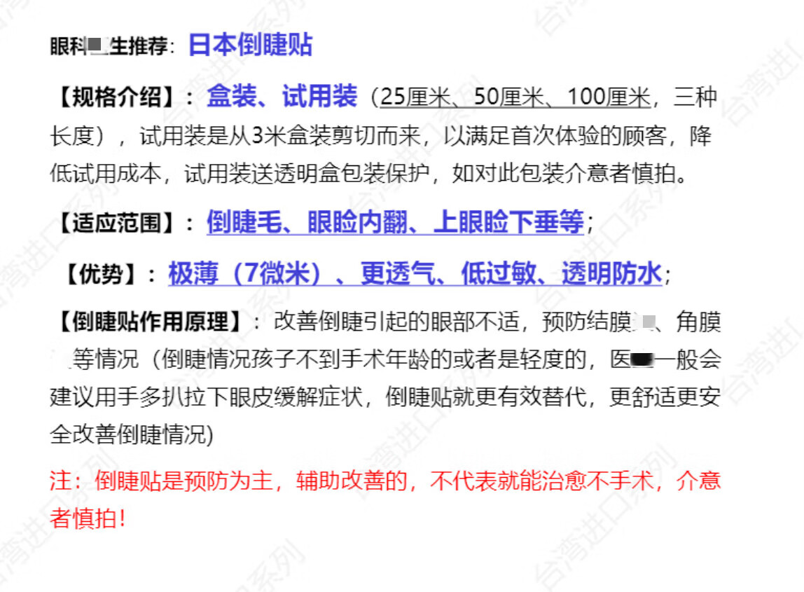 泊泉雅日本倒睫贴倒睫毛贴儿童倒睫毛胶带宝宝下睫毛倒睫25cm试用装大概能用25次