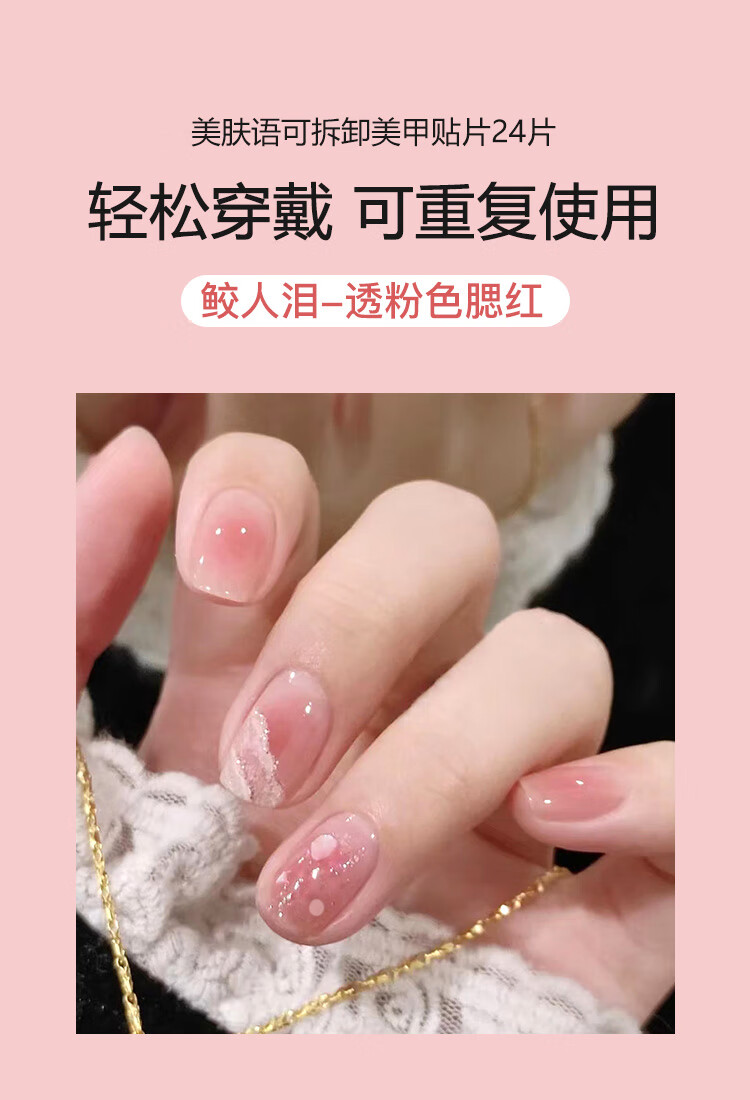 美肤语美甲贴片穿戴甲(鲛人泪-透粉色腮红)假指甲果冻胶可拆卸MF8656