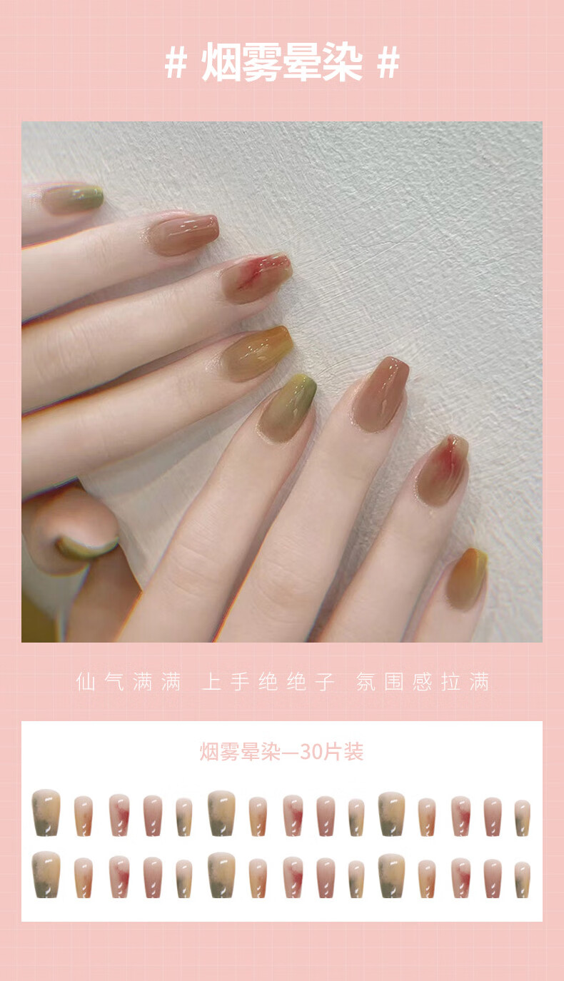 晨色穿戴甲美甲贴片指甲贴成人甲片短款假指甲(烟雾晕染)情人节礼物