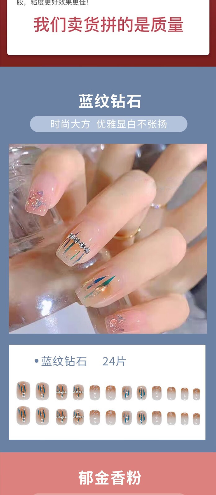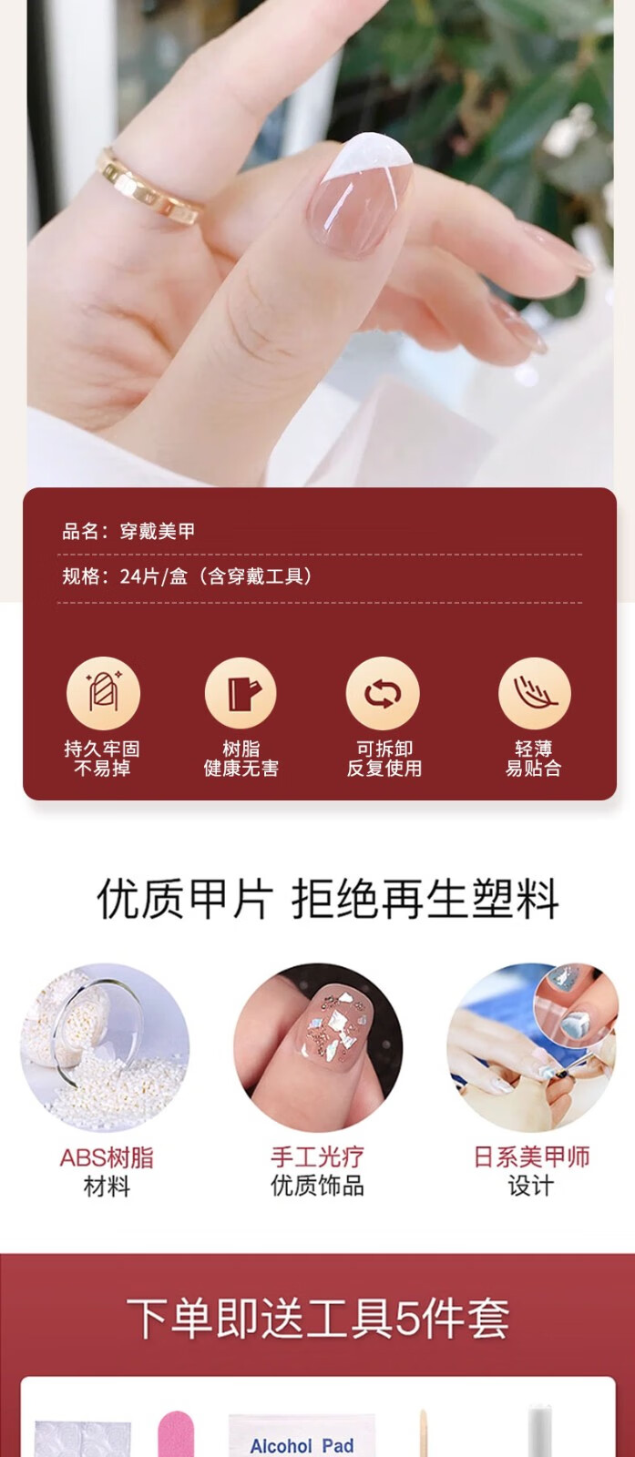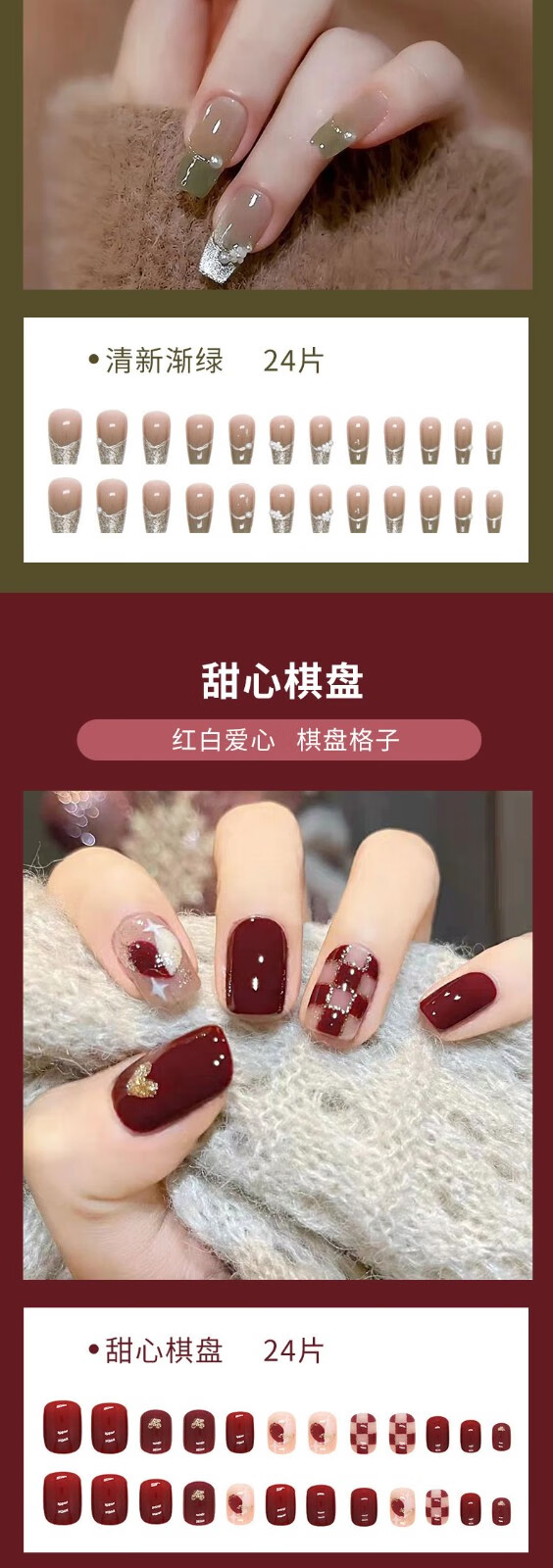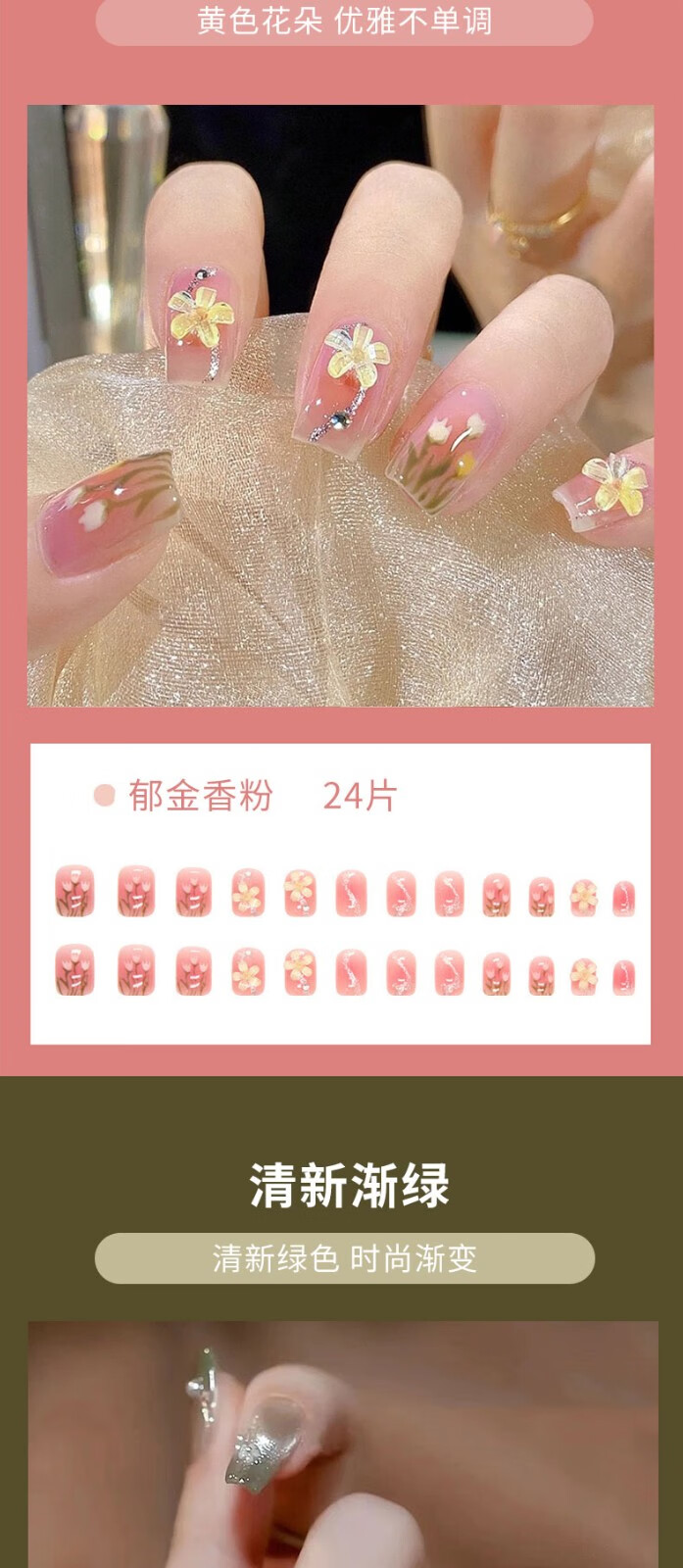 铂呐苓穿戴甲美甲甲片指甲贴24片含果冻胶美甲工具可拆卸美甲贴片假指甲清新渐绿+工具包【常规款】