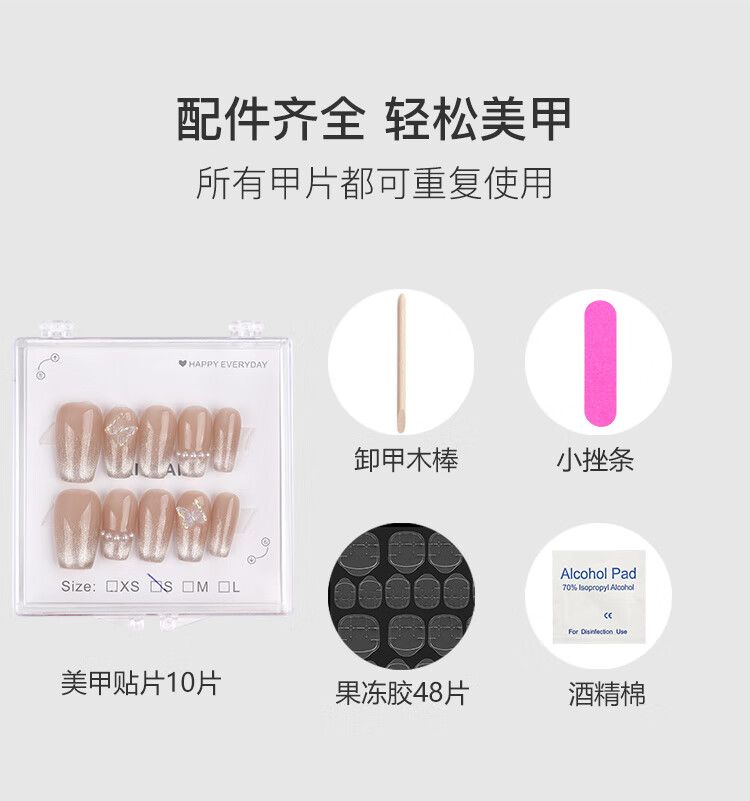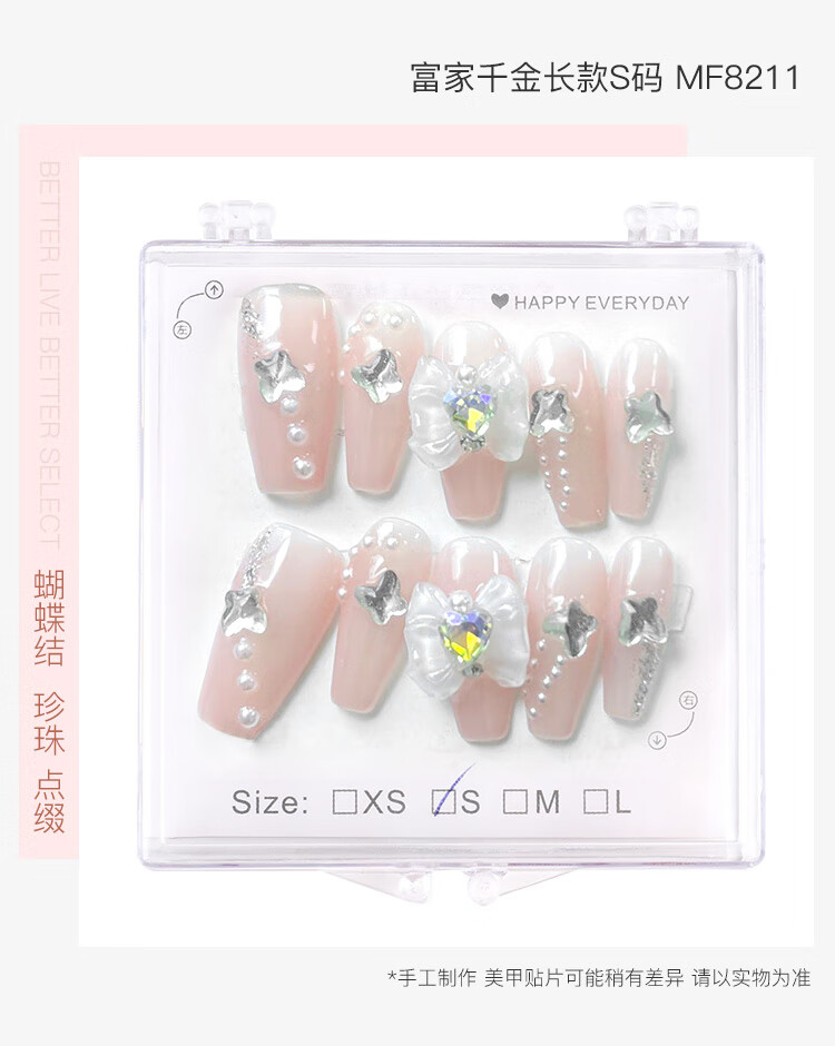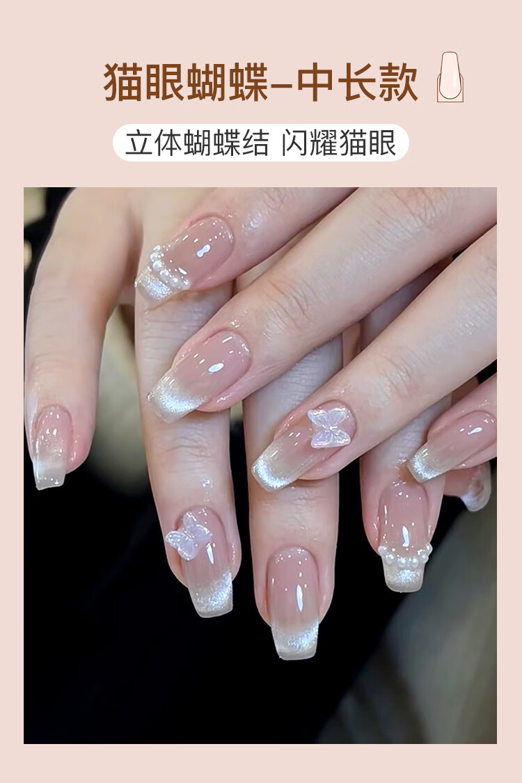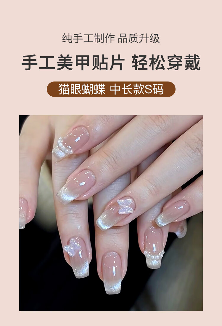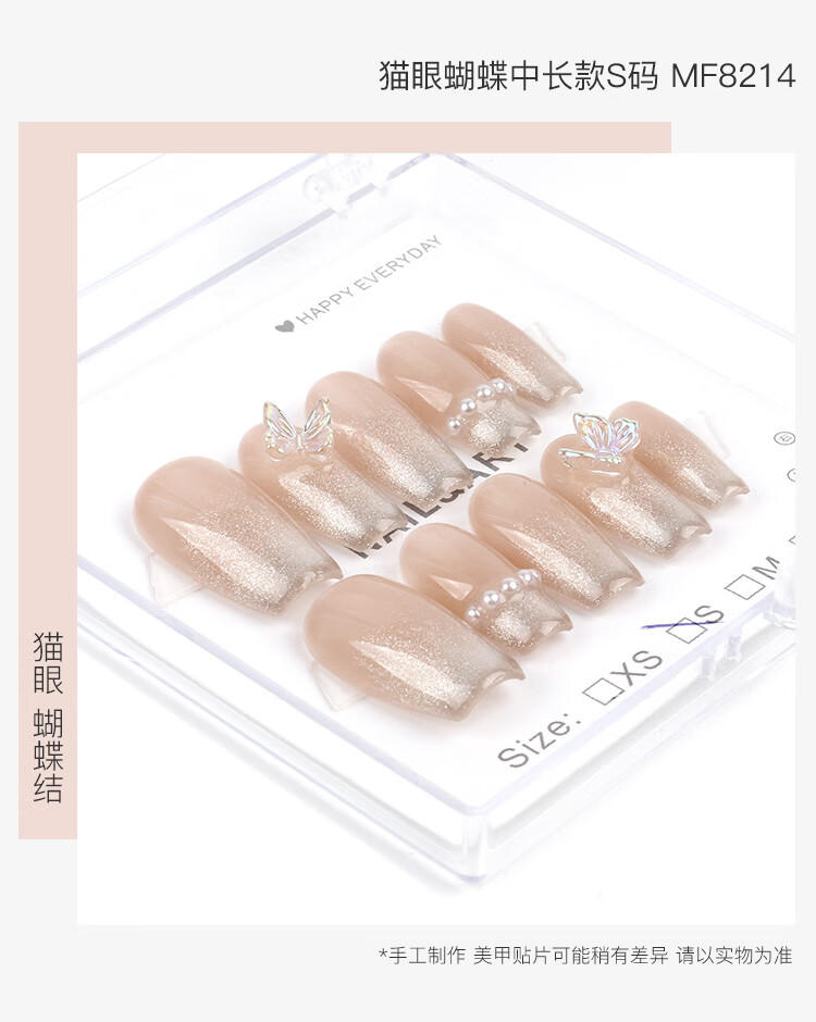 美肤语美甲贴片纯手工穿戴甲(猫眼蝴蝶S码)MF8214