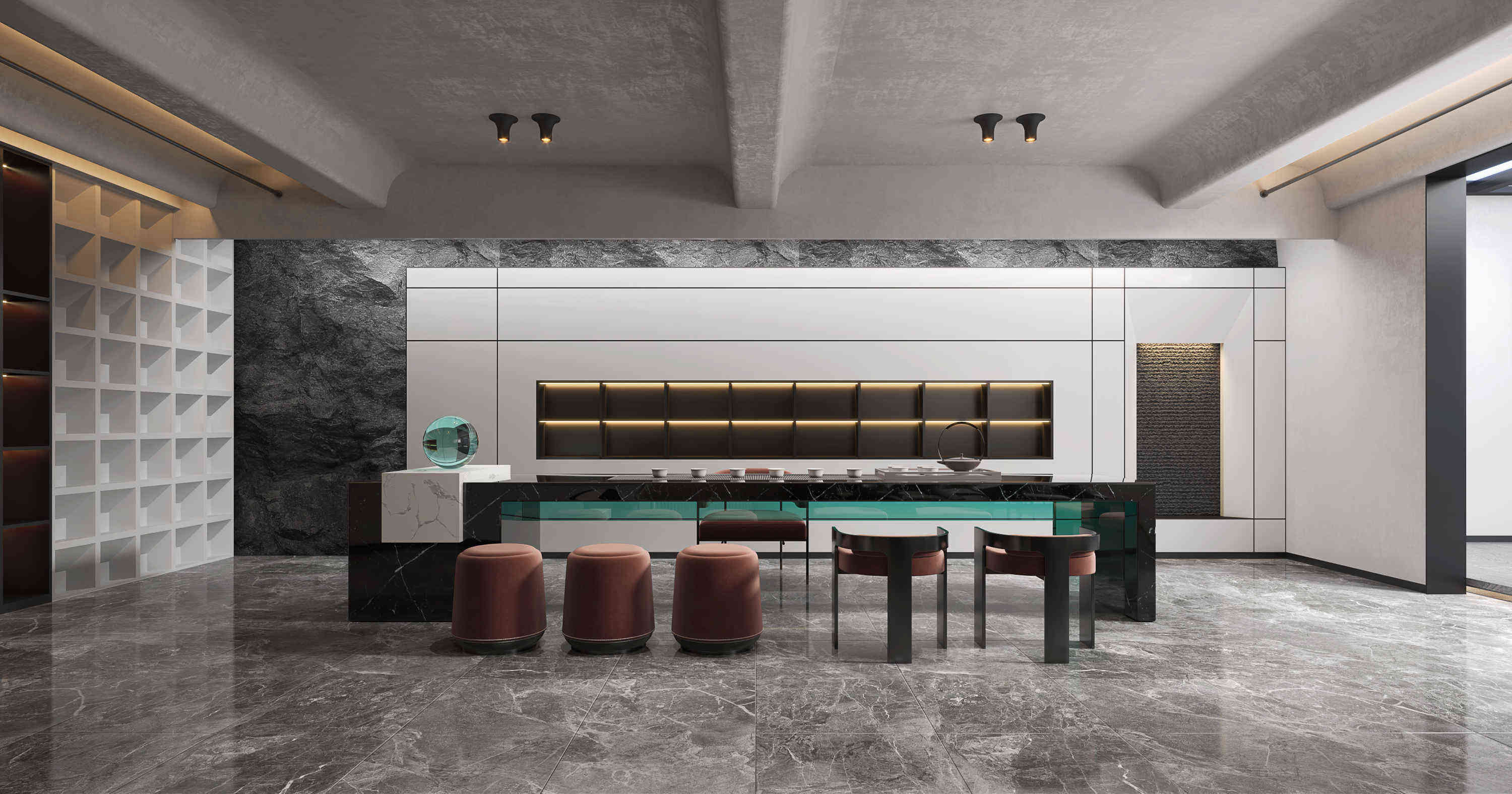 餐饮店铺展台展厅门头办公室科技设计装修效果图si公装空间设计